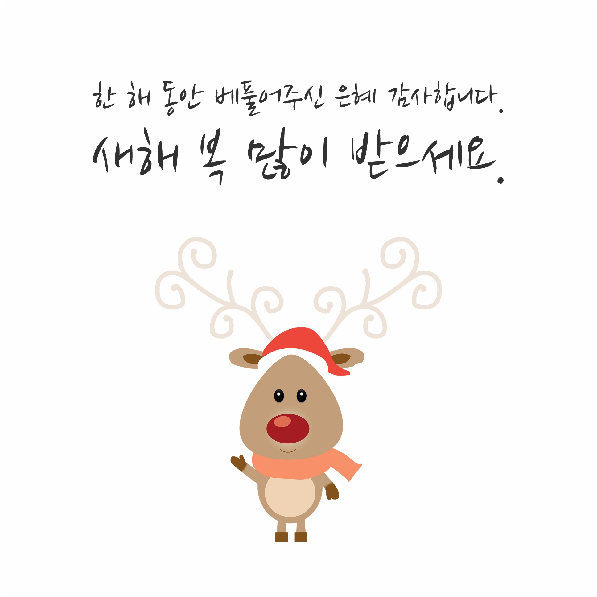 한 해 동안 정말 수고 많으셨습니다. 큰 탈 없이 지나왔지만 새해에도 건강하고 행복이 가득한 그런 한 해가 되시길 바랍니다.
