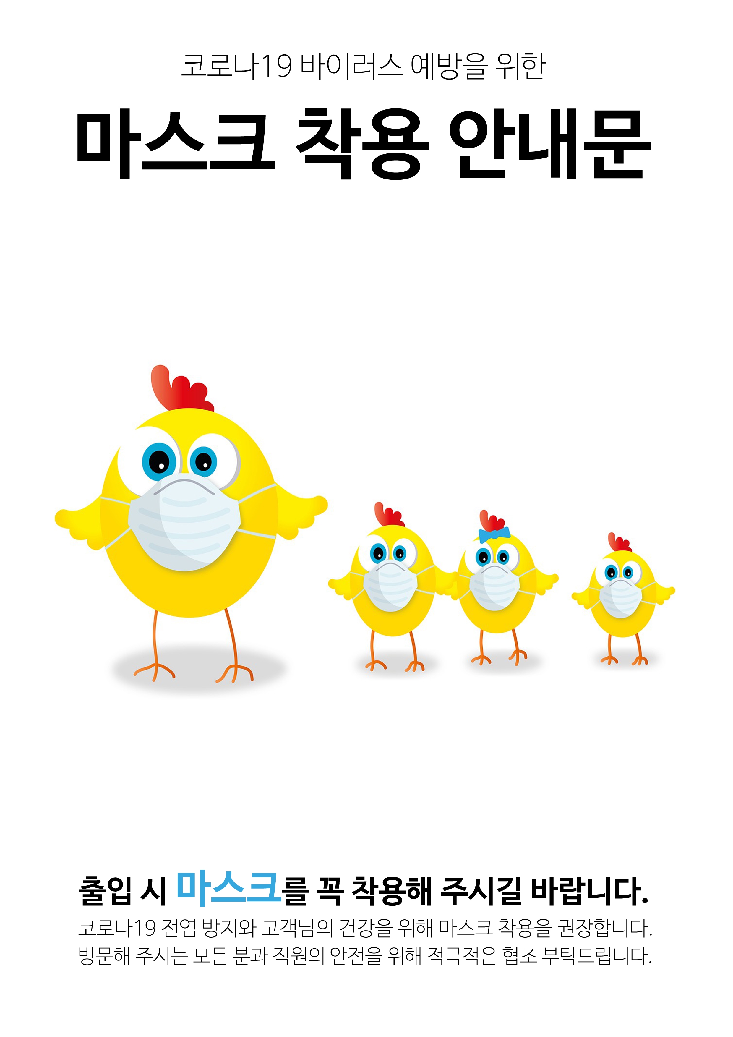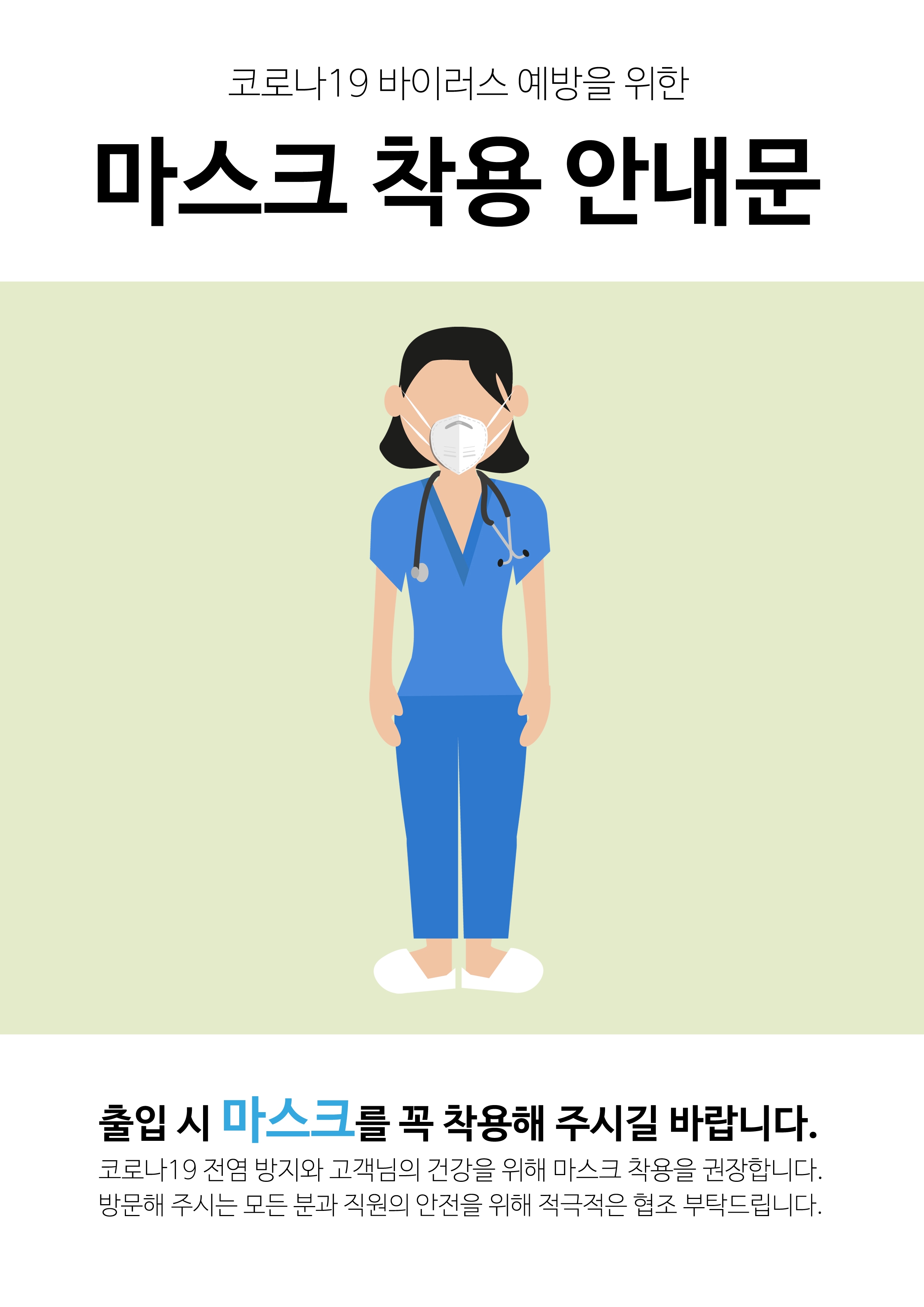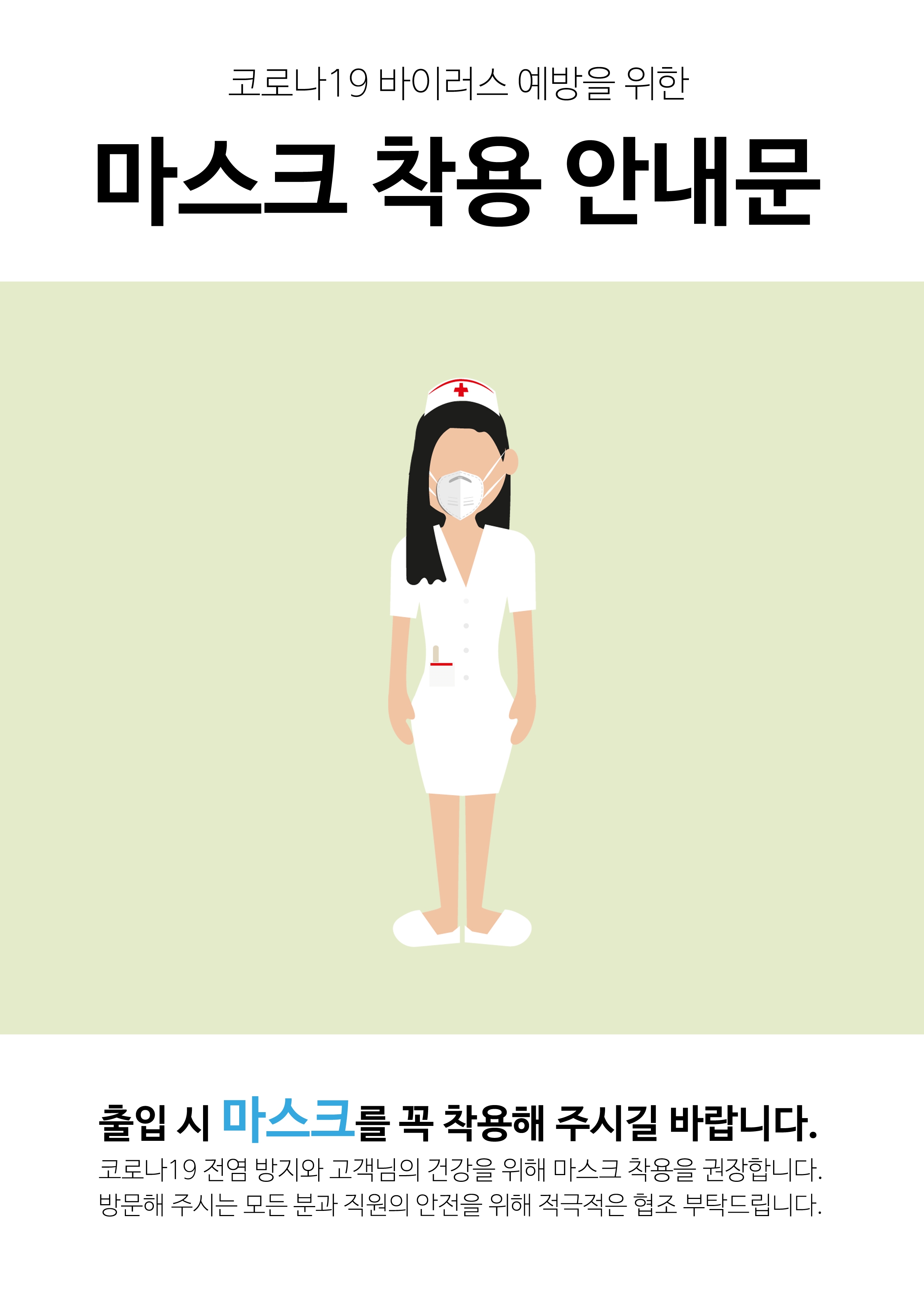 병원 또는 아파트 승강기(엘리베이터) 및 어린이집이나 기타 카페나 매장 등 다양한 공간이나 근린 생활 시설에서 활용할 수 있는 마스크 착용 안내문을 제작을 했는데요.