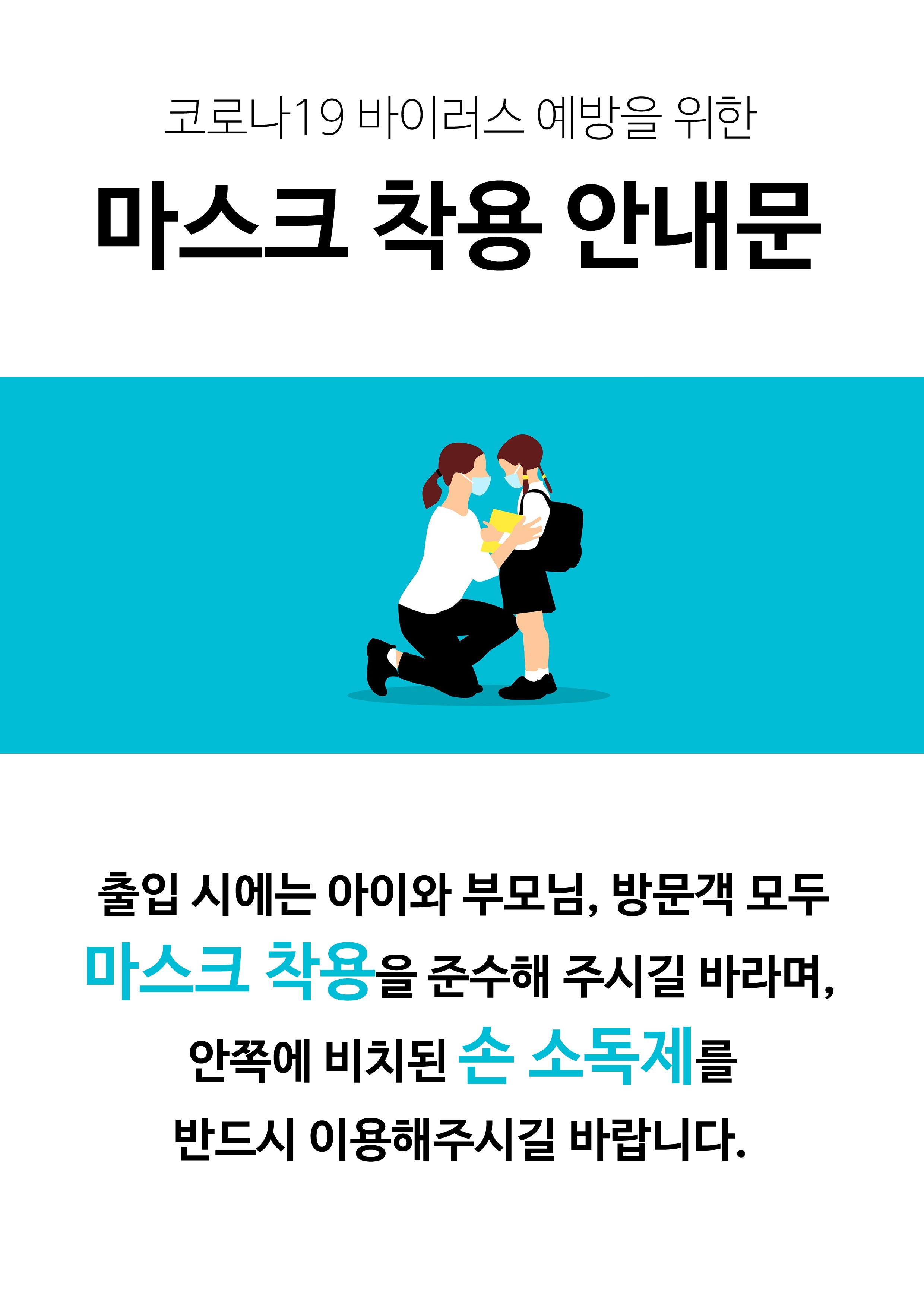 4 어린이집 전용 마스크 착용 및 손 소독제(세정제) 비치 안내문 (총 4가지 디자인)