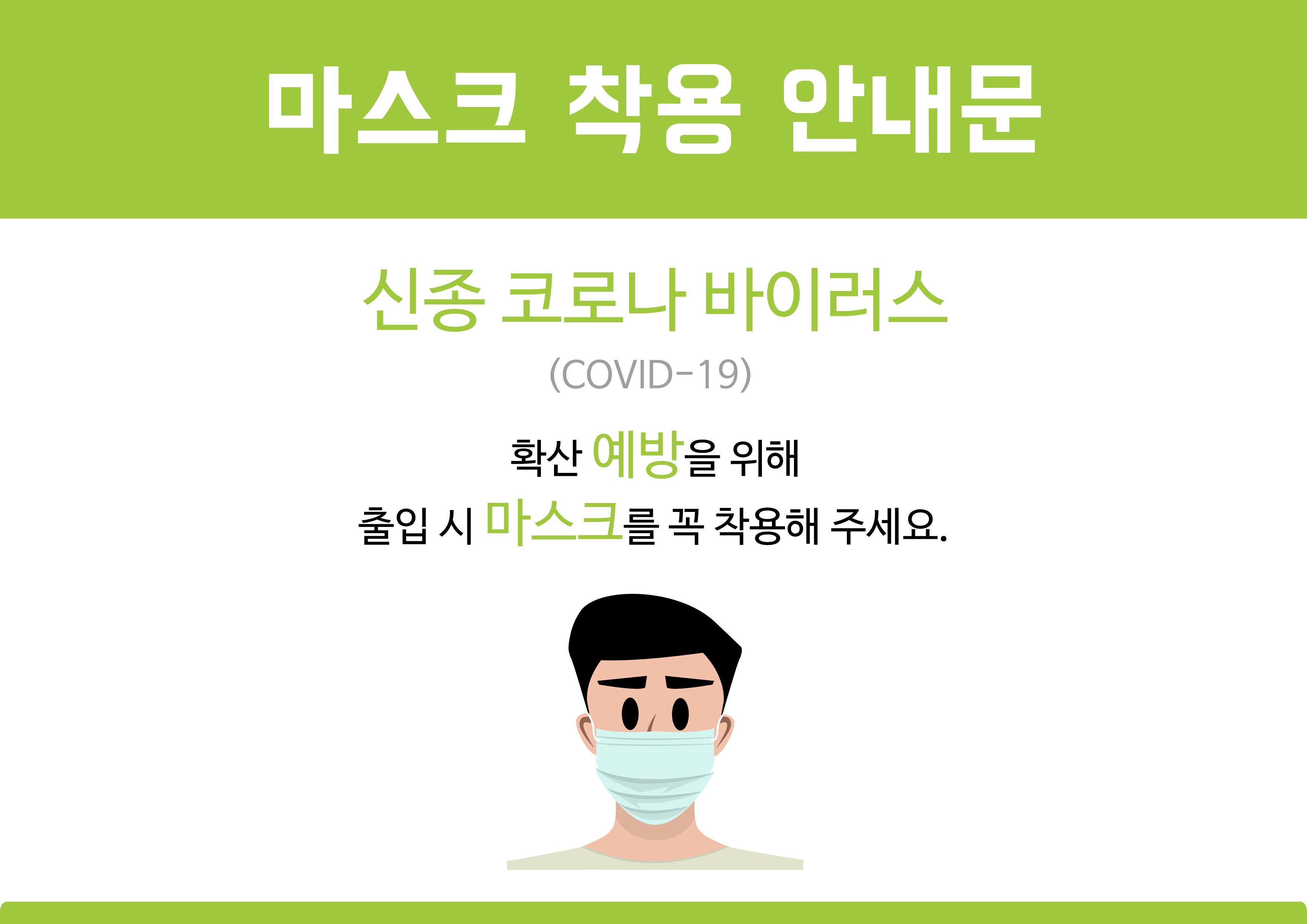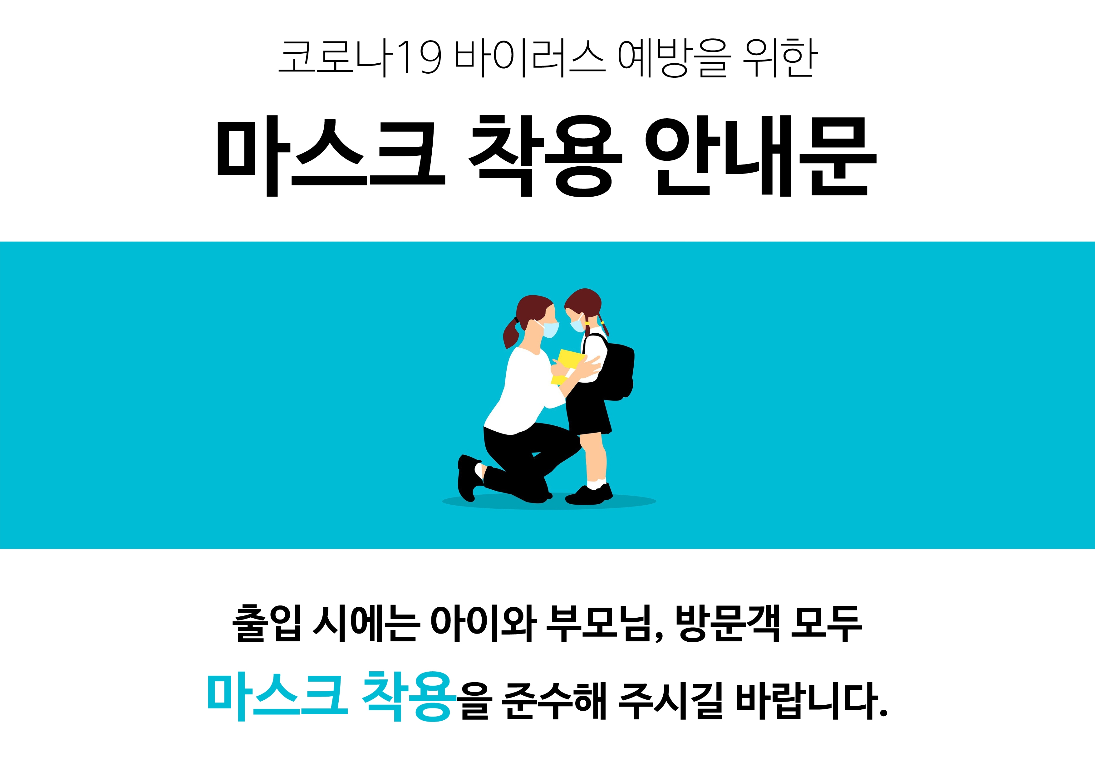 코로나 19 마스크 착용 안내문 병원 및 승강기 내 어린이집 이미지 포스터 문구 54종