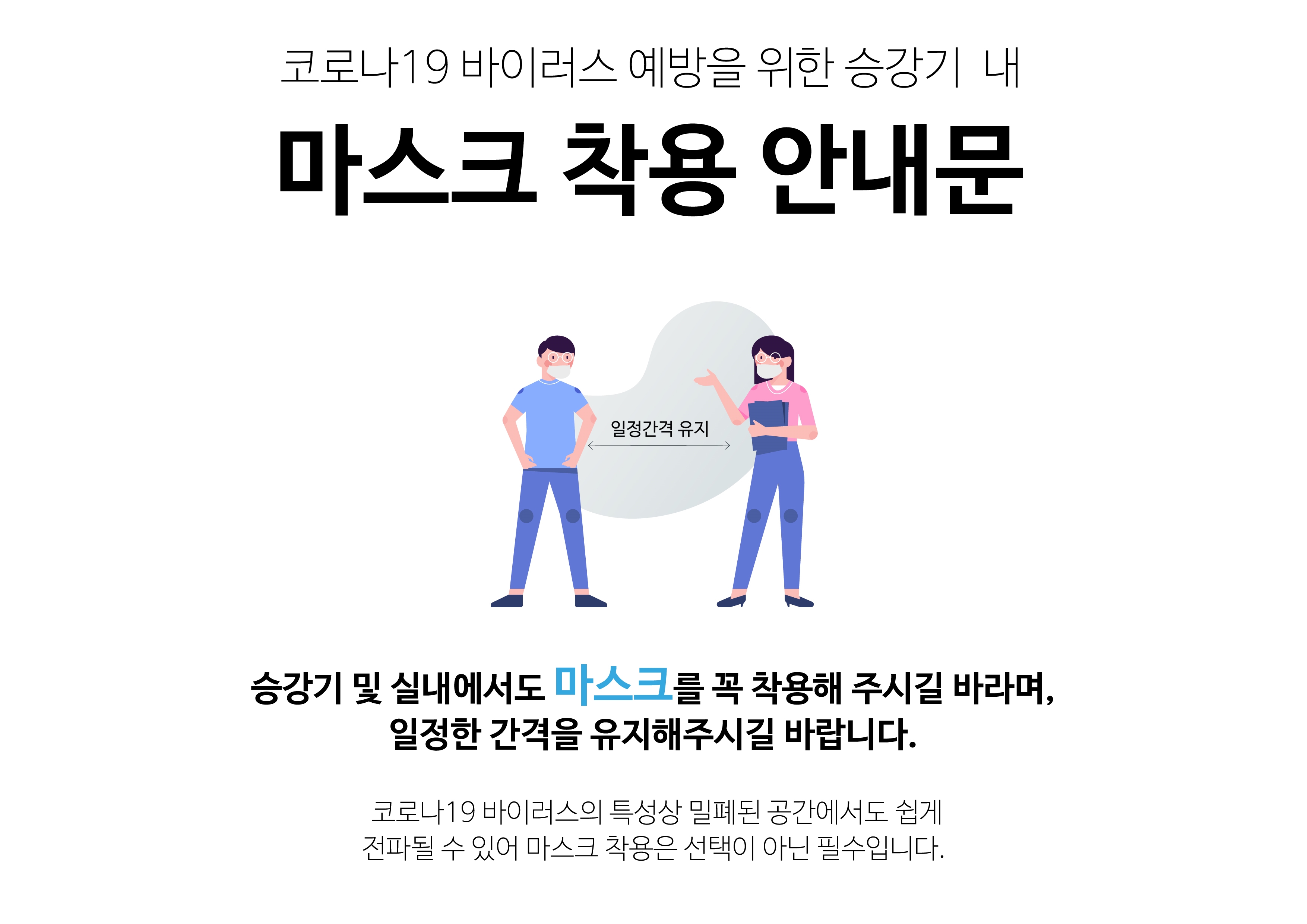 5 승강기(엘리베이터) 내 마스크 착용 및 손 세정제, 일정 거리 유지 안내문 (두 가지 디자인입니다)