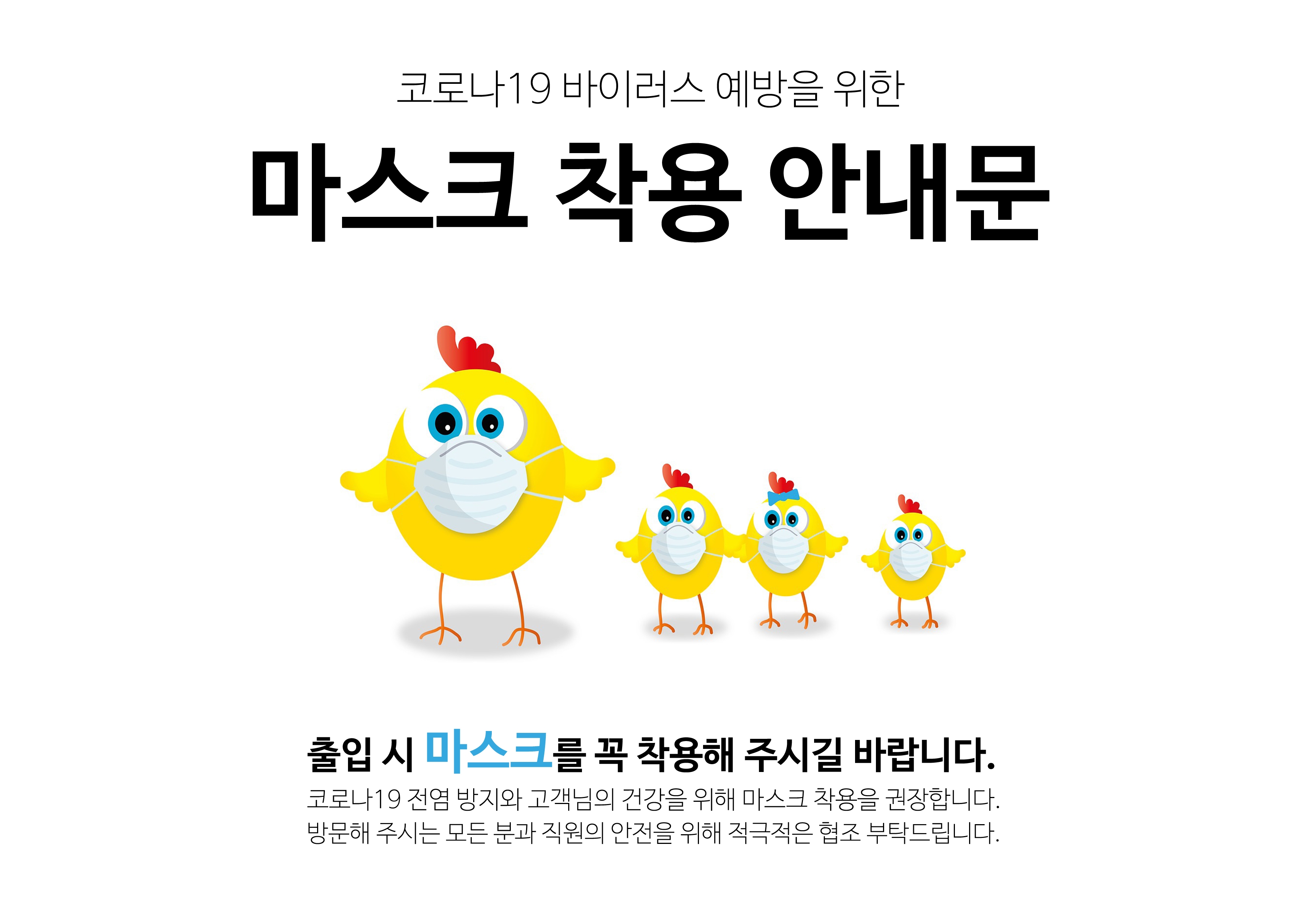 3 캐릭터가 들어간 마스크 착용 안내문 포스터 문구